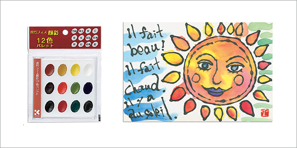 - 12色:岱赭・紫・黒・黄土・朱・紅・黄・黄草・緑青・白・群青・藍