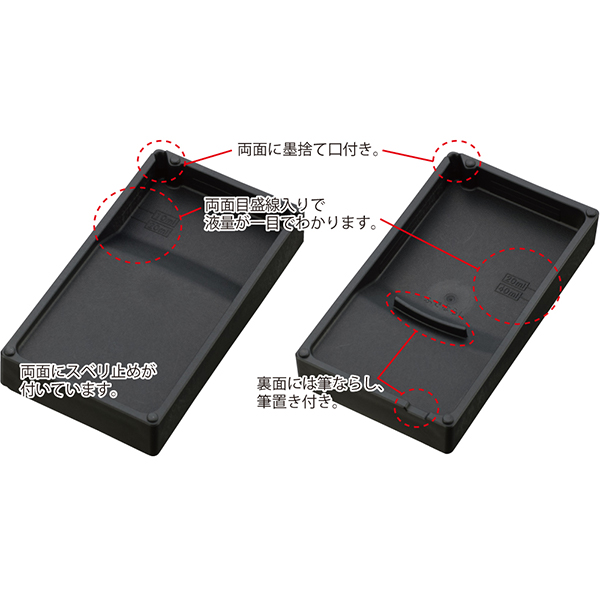 両面に墨捨て口と滑り止めストッパーが付いています。