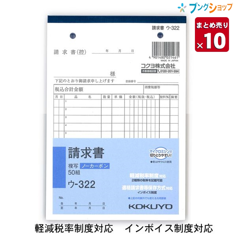 【10冊まとめ売り】請求書 B6縦 ウ-322 軽減税率制度 適格請求書等保存方式 インボイス制度対応