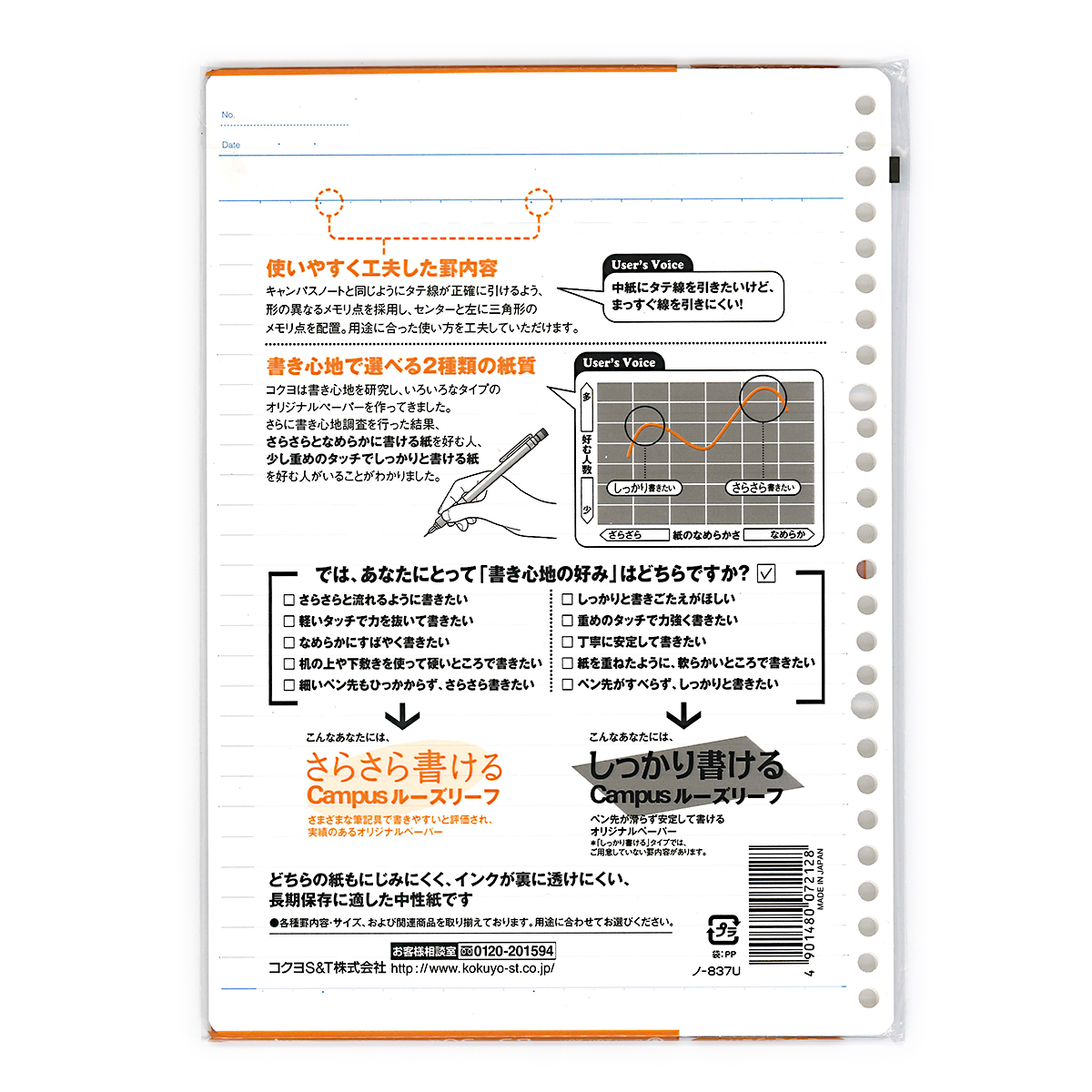キャンパスルーズリーフ(さらさら書ける) U罫 B5 50枚 ノ-837U