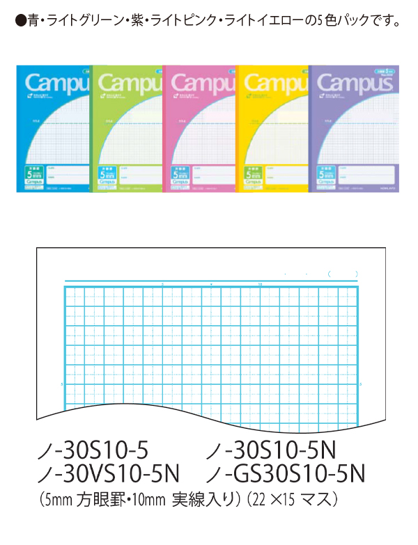 キャンパスノート5mm方眼 5冊パック ノ-30S10-5×5