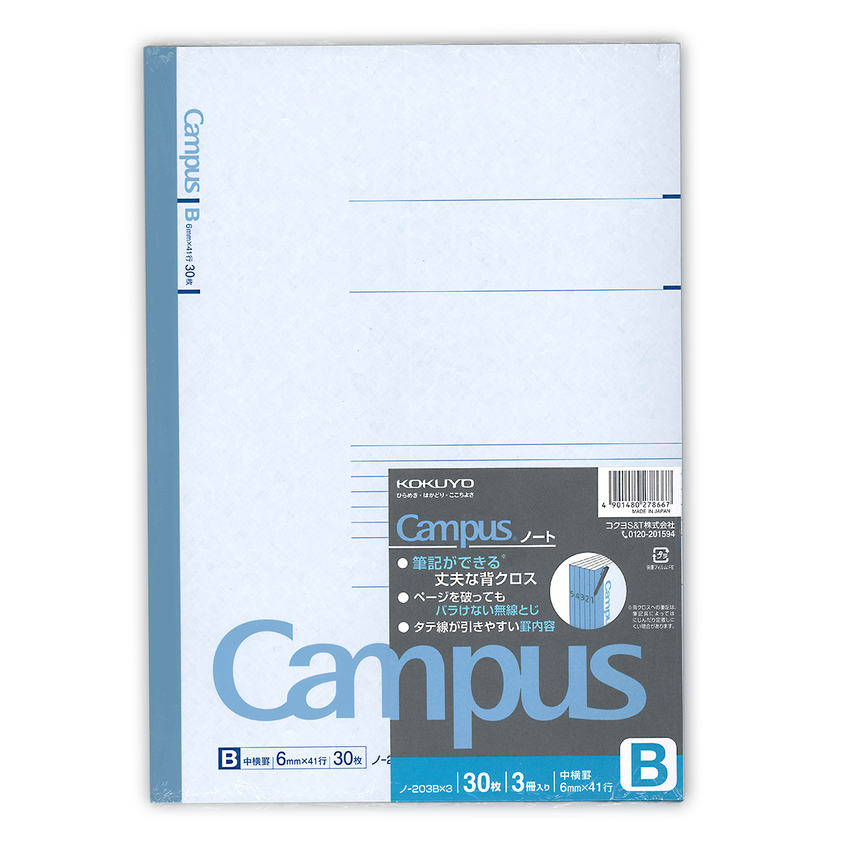 キャンパスノート A4 3冊パック B罫 ノ-203BX3