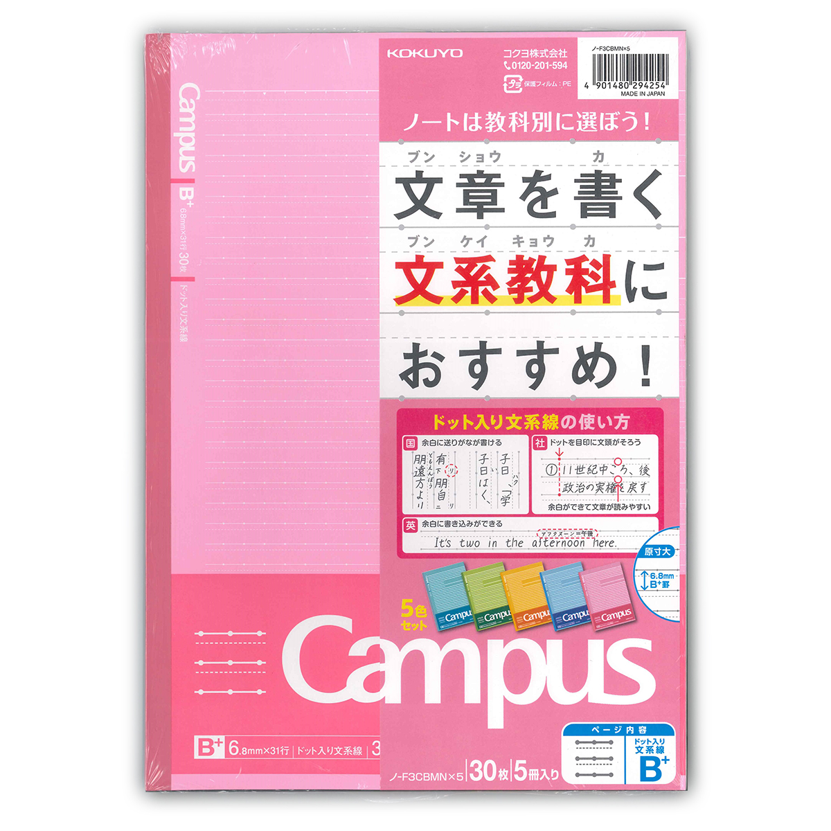 - 罫線上の「ドット」と行の中の「点線」。この2つをうまく活用することで、読みやすく美しいノートになる文章罫のキャンパスノートです。