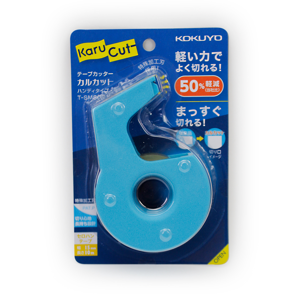 - カルカットの特殊加工刃で約1/2の軽い力でテープを切ることができます。