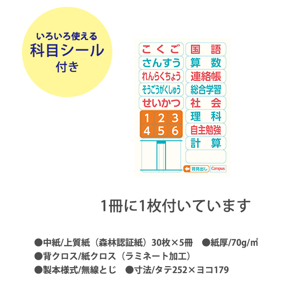 - 5mm方眼罫(10mm実線入り)・科目シール付き