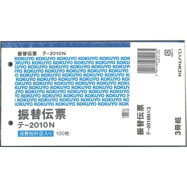 振替伝票(税等表示欄付)3冊パック テ-2010×3