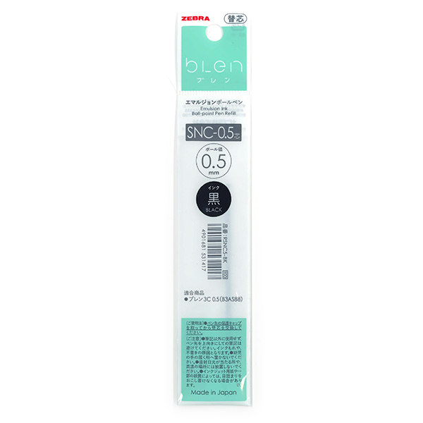 ゼブラ エマルジョンボールペンブレン 多色用替芯 SNC-0.5芯 黒 RSNC5-BK 適合商品:B3AS88