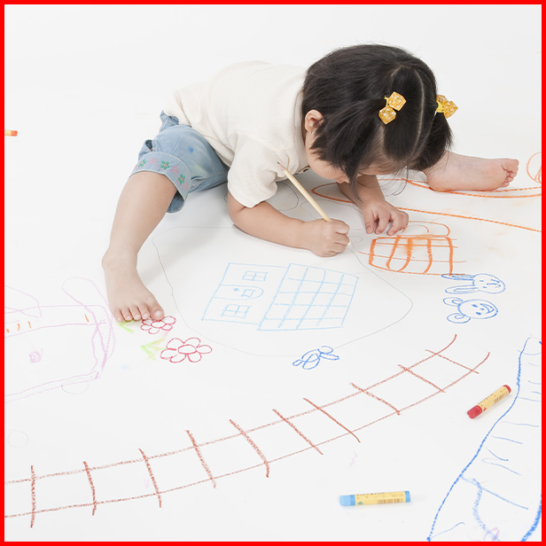 こどもはお絵かき大好きだけど 床やかべや手に付いた色がなかなか落ちない・・・
