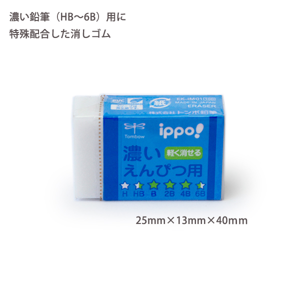 - 濃い鉛筆用に特殊配合された 軽く消せる濃いえんぴつ用消しゴム
