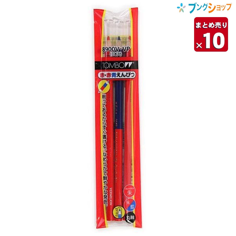 赤・赤青鉛筆 8900V2P 3本入り 朱2 朱/藍1 キャップ付 BSA-360CV