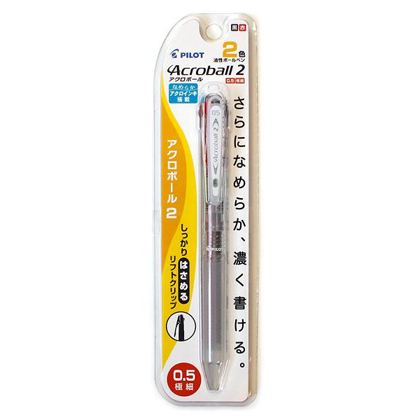 - 低粘度アクロインキでなめらかに濃く書ける、アクロボール2色ボールペン。