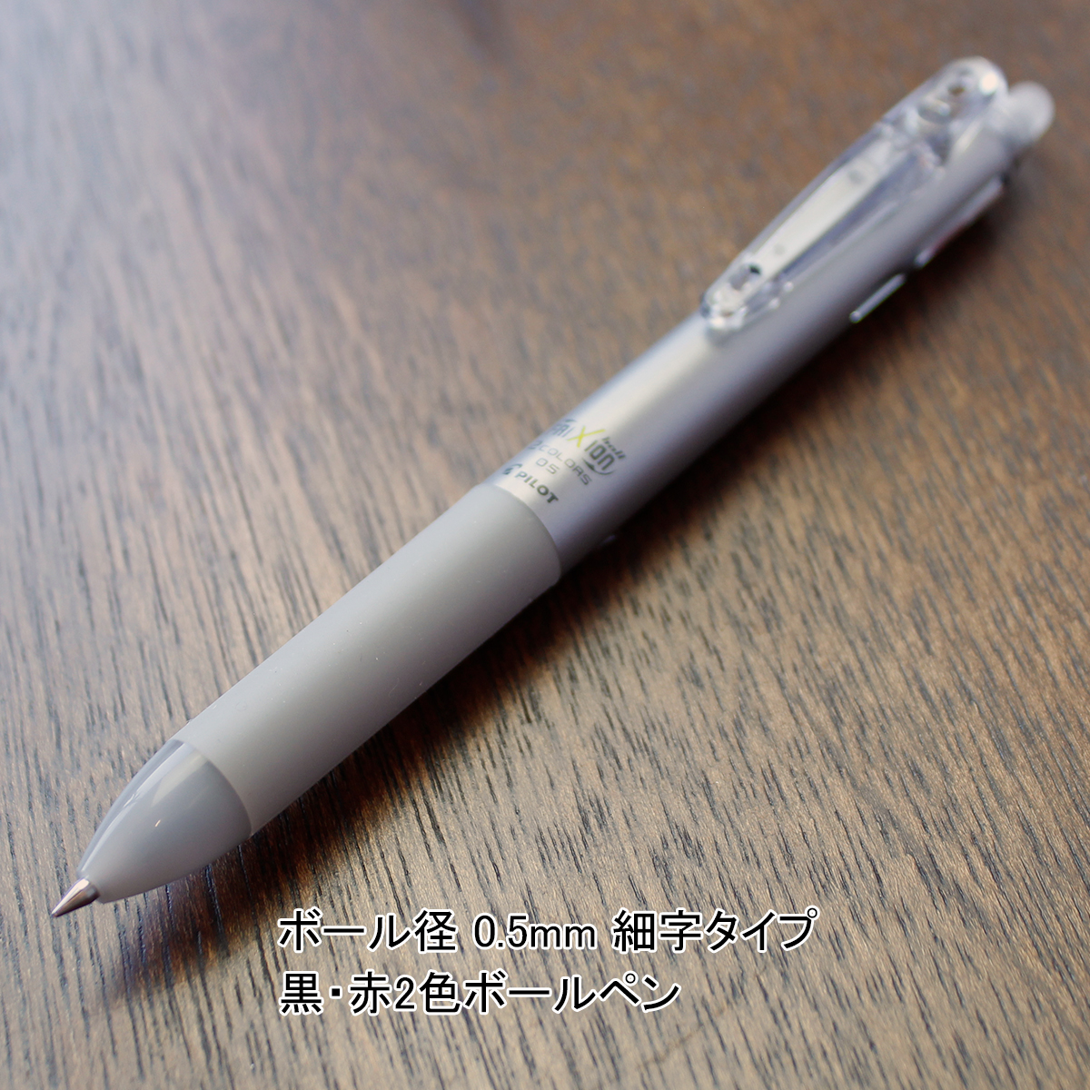 落ち着いた雰囲気を醸し出すシルバーボディの2色ボールペンです。