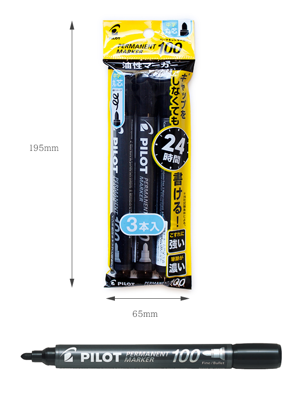 パイロット 油性マーカー パーマネントマーカー100 黒 中字丸芯 パック3本入り 24時間キャップしなくても書ける!! P-MPM-30F-3B- サイズ