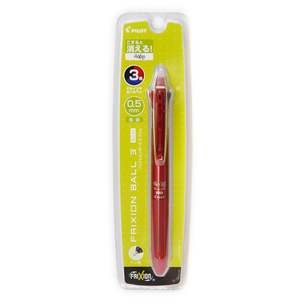 - 摩擦熱で無色になるインキを搭載したスリムボディ3色ボールペン