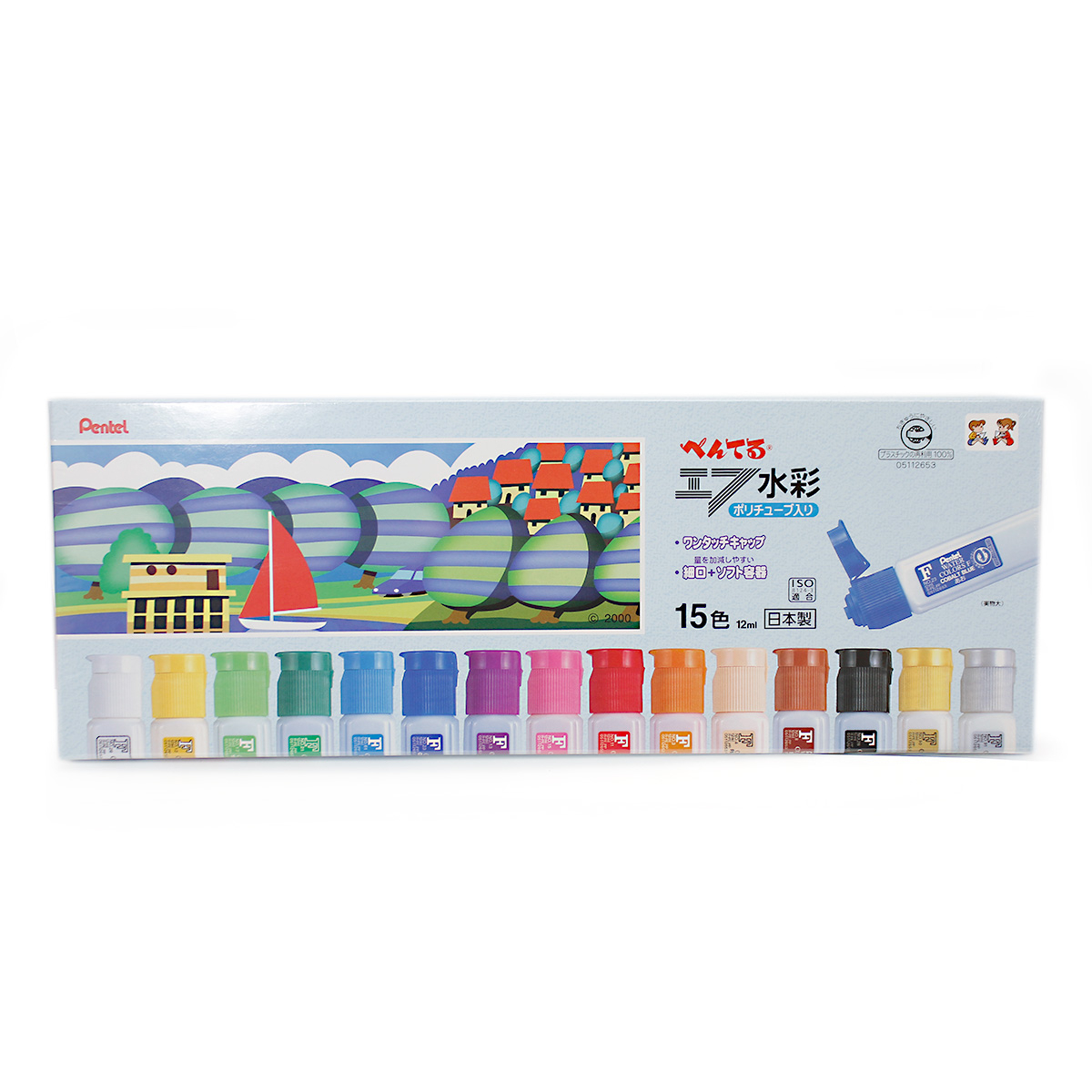 あざやかな発色の水彩絵具15色セット ポリチューブ入り