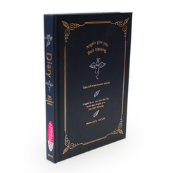 - ブラックのカバーに天使が箔押しされたお洒落なデザインの日記帳