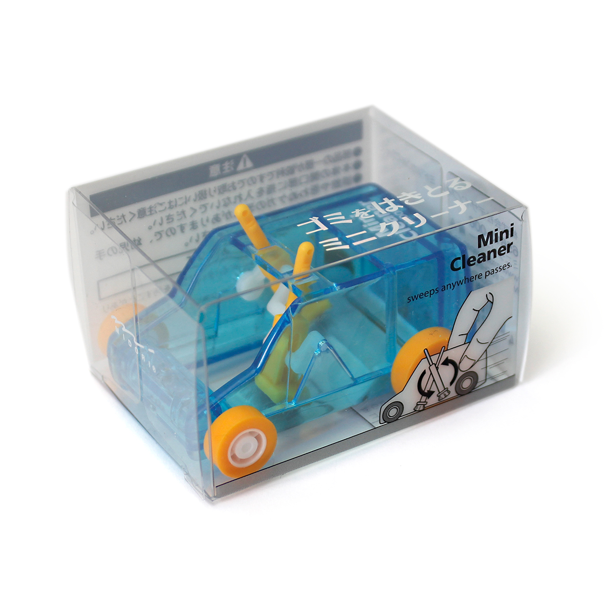 - ちいさな2本のほうきが交互に動いてせっせと後ろのゴミ受けにあつめてくれるミニクリーナーです。
