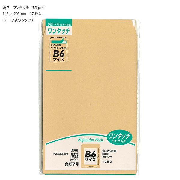 - B6サイズのテープ式ワンタッチ(のり付き) クラフト封筒17枚入り