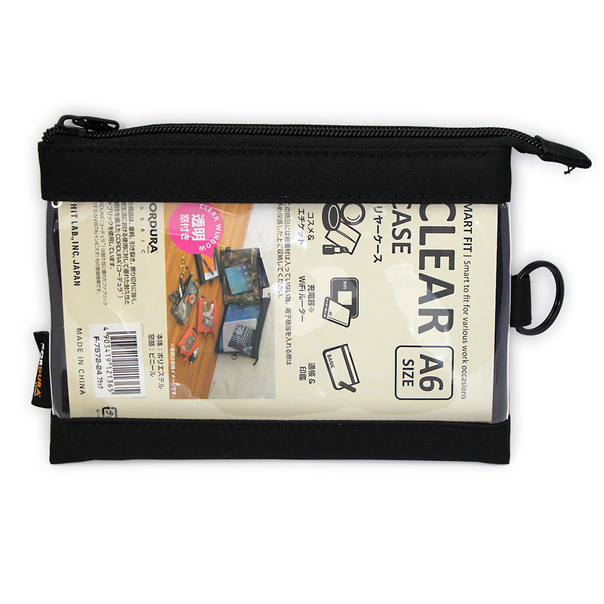 収容物が一目で分かる!! 大きな透明窓が付いた SMART FIT クリヤーケース A6サイズ ブラック F7572-24