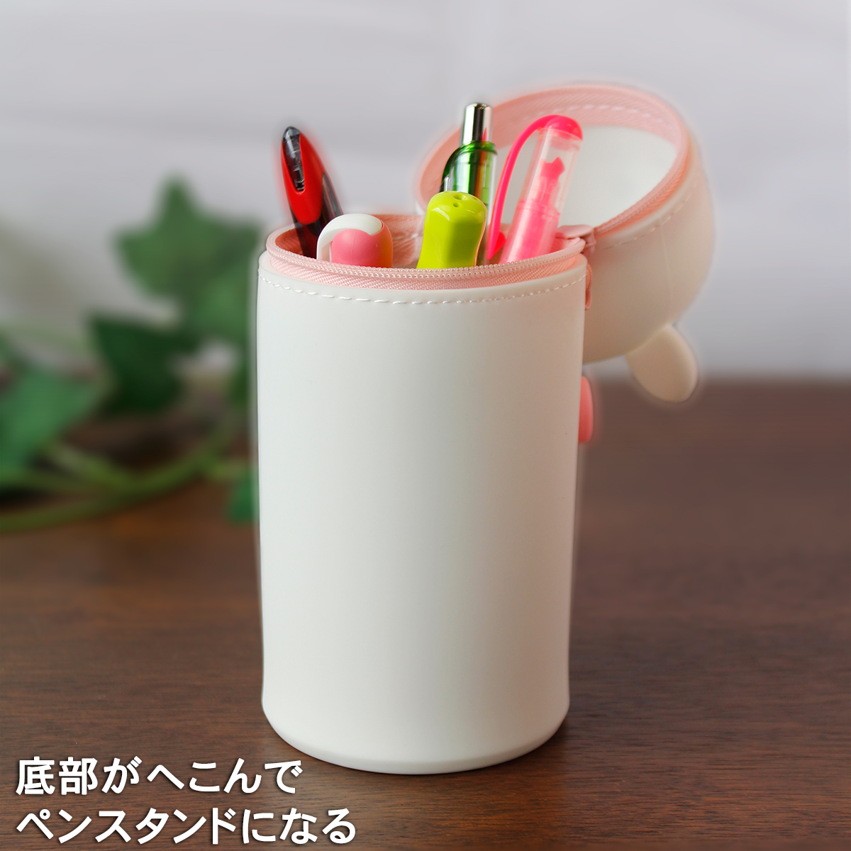 - 「立つ」ペンケース大容量タイプ。上から押すだけでペンスタンドに早変わり。