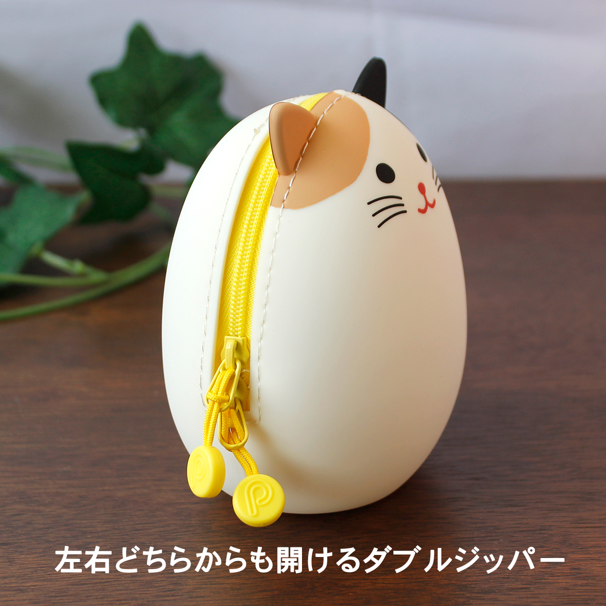 立てて置けるたまご型ポーチ PuniLabo エッグポーチ A-7782-7 ミケネコ