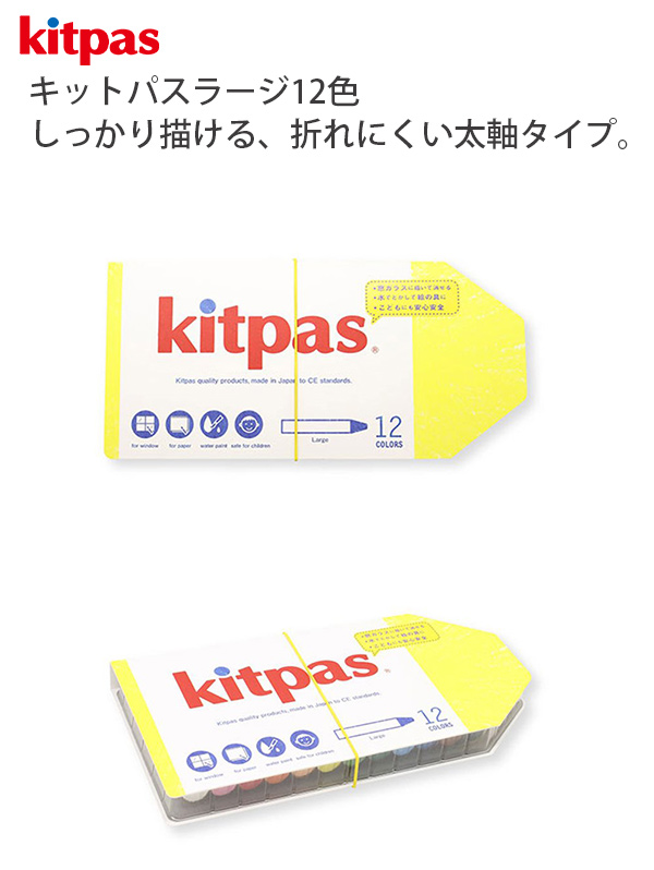 日本理化学工業 くれよん キットパス kitpas ラージ12色 KPL-12C ライスワックス 米ぬか しっかり描ける 折れにくい 太軸タイプ 子どもに安心安全