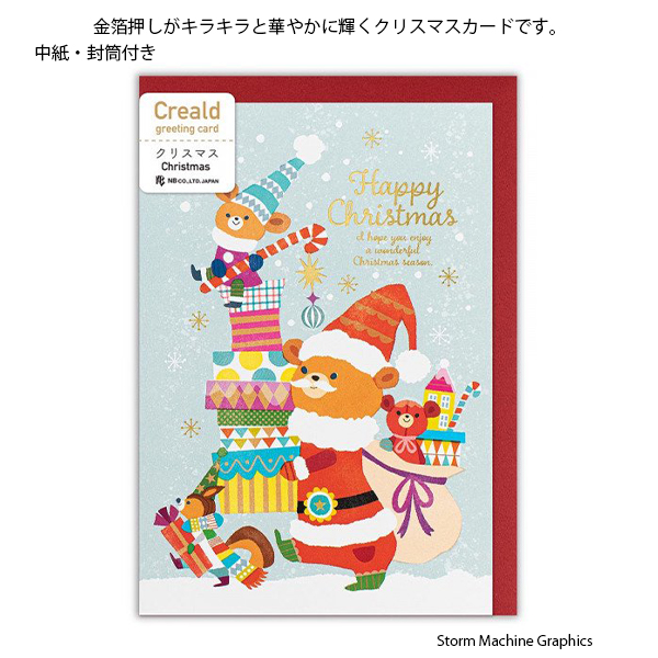 エヌビー社 クリスマスカード 二つ折り 絵柄付中紙入 定型サイズ くまとプレゼント 5685314