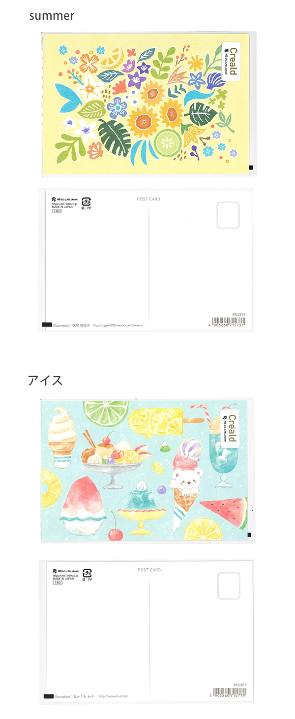 NB エヌビー ポストカード 5枚セット 横デザイン 郵便枠無し 縦100×横148mm ペンギン4922828/夏としば4922804/夏の猫4922806/サマー4922803/アイス4922807/sea4922808/