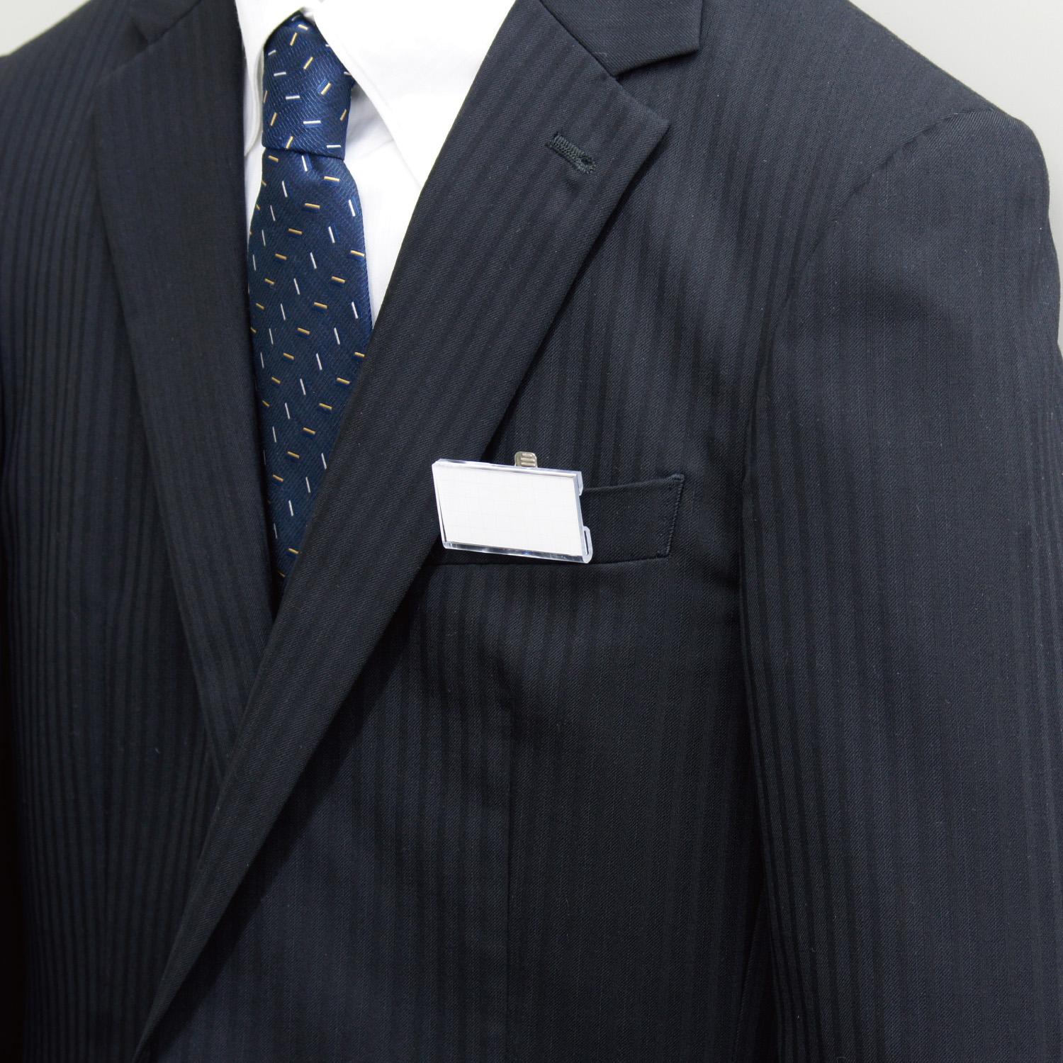- 安全ピン付きクリップで胸ポケットにクリップするほかしっかり安全ピンでとめられます。