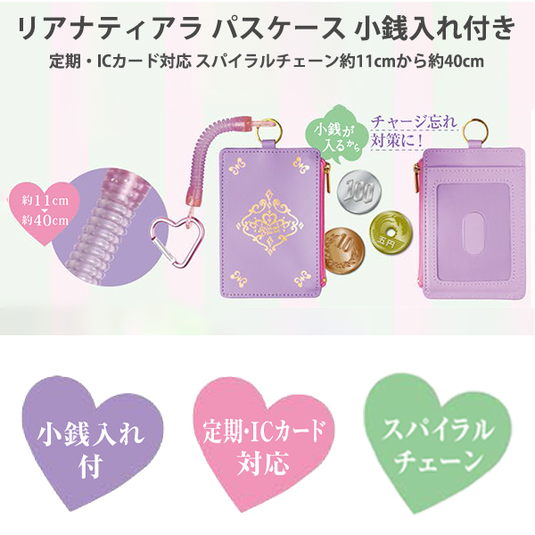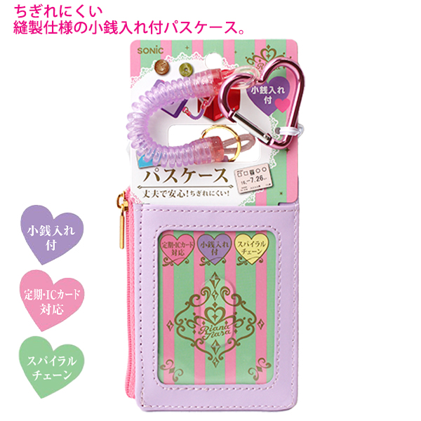 - 丈夫で安心! 縫製仕様のリアナティアラ 小銭入れ付きパスケース