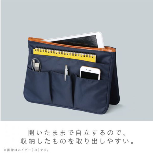 ワークスペースをすぐに展開することができます。開いたままで自立するので、収納したものを取り出しやすい。