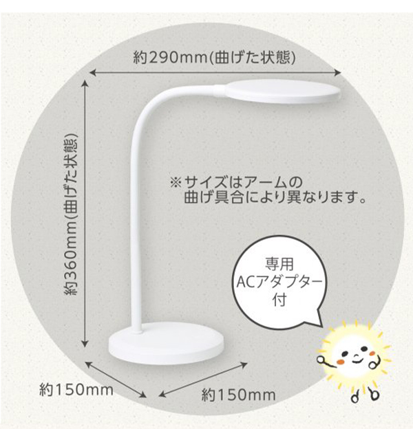 無段階調光で、お好みの明るさにスイッチ長押しで調整できます。ぐねぐね曲がるフレキシブルアームは角度も位置も自由自在。衝撃に強くこわれにくい。