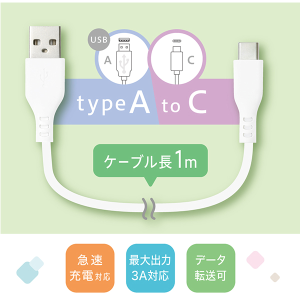 ソニック しなやかシリコンUSBケーブル 1m TypeAtoC UL-6968-W ホワイト