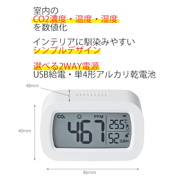 - 人の密集や空気のよどみを気づかせてくれるCO2モニター