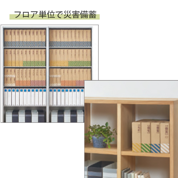 ほとんどのセットがA4/A5ファイルサイズに統一されており、一般的なキャビネットにきれいに収まります。シリーズで統一すれば、効率よく備蓄品を収納することが可能です。