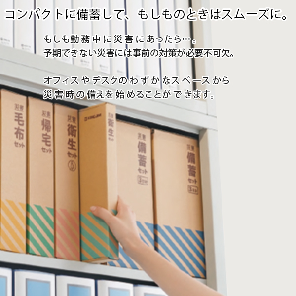 オフィスやデスクのわずかなスペースから災害時の備えを始めることができます。