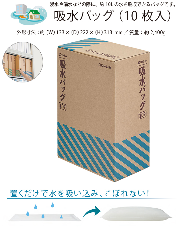 キングジム 吸水バッグ(約10Lの水を吸収可能)10枚入り 浸水・漏水・雨漏り・結露に 置くだけで水を吸い込みこぼれない KBG-200