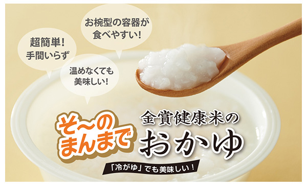 近畿大学農学部と幸南食糧株式会社の共同開発した「金賞健康米」の温めなくても美味しいおかゆです。