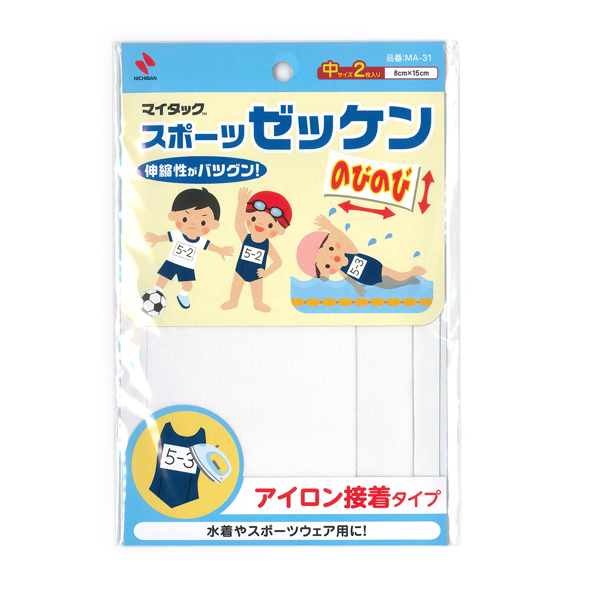 - ・水着やスポーツウェアなど伸縮性のあるものにぴったりと接着できるゼッケンです。