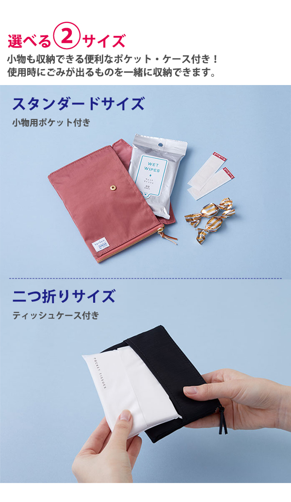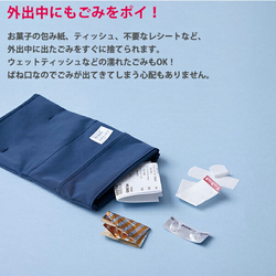 お菓子の包み紙、ティッシュ、不要なレシートなど、外出中に出たごみをすぐに捨てられます。