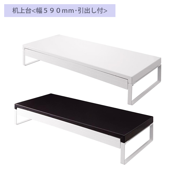 - モニター台として人気の590mm幅机上台に便利な引出しが付きました。