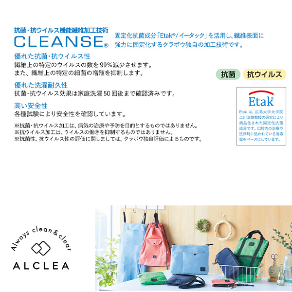 クラボウの抗菌・抗ウイルス機能繊維加工技術を活用した素材を使用しています。