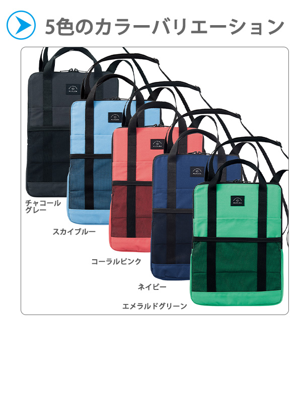 - エメラルドグリーン/ネイビー/コーラルピンク/スカイブルー/チャコールグレー