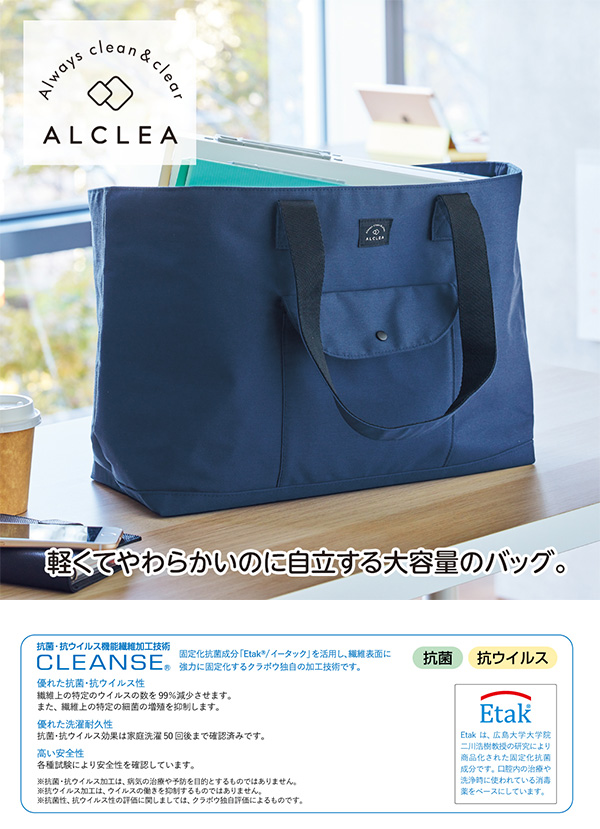ALCLEA ラージトートバッグ A7929 280×370×160mm ネイビー/チャコールグレー/ 抗菌・抗ウイルス機能繊維 クレンゼ