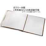 L判写真なら120枚収納可能な白フリー台紙アルバムです。