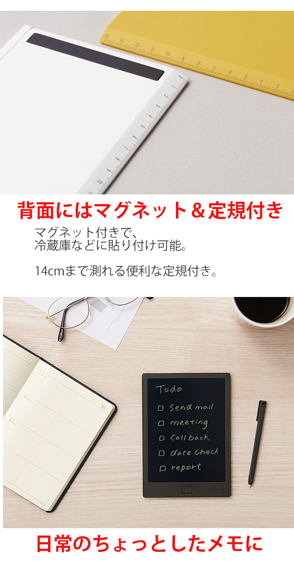 キングジム ブギーボード 黄/黒/白/ネイビー/緑 BB-14 A6サイズ スイスイ書いてパッと消せる 軽い 薄い 電池交換可能 マグネット付き タッチペン付き