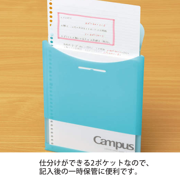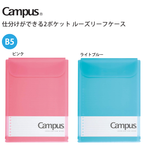 コクヨ キャンパス 仕分けができる2ポケット ルーズリーフケース ドット入り30枚入り 100枚収納可能 A罫用 ピンク ノ-CP836AT-P/B罫用 ライトブルーノ-CP836BT-LB