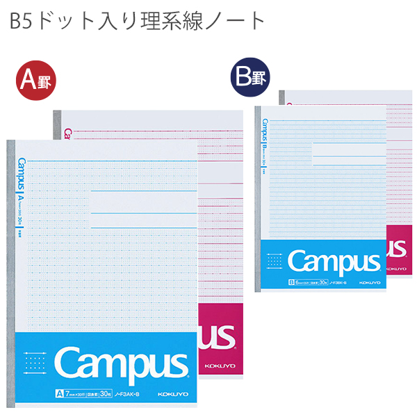 コクヨ キャンパスノート ドット入り 理系線 30枚セミB5 A罫7mmノ-F3AKN 青・桃/B罫6mm ノ-F3BKN 青・桃 無線とじ 図形 数学 理科 物理