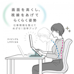 ノートパソコンの画面を高くし、視線をあげてらくらく姿勢