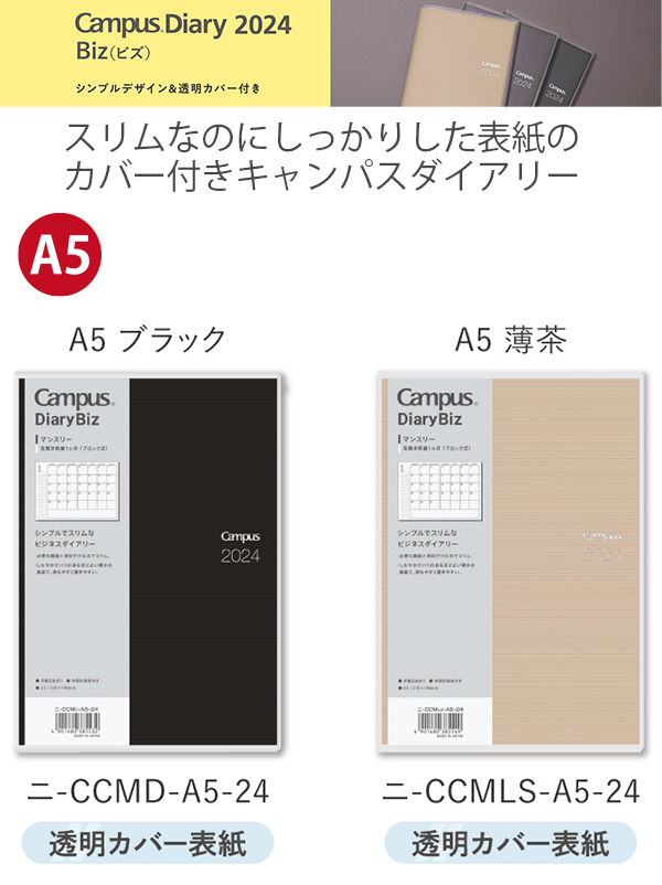 コクヨ キャンパスダイアリーBizマンスリータイプ A5 ブラックニ-CCMD-A5-24 / 薄茶 ニ-CCMLS-A5-24 見開き両面1カ月 2023年12月~2025年1月(月曜始まり)